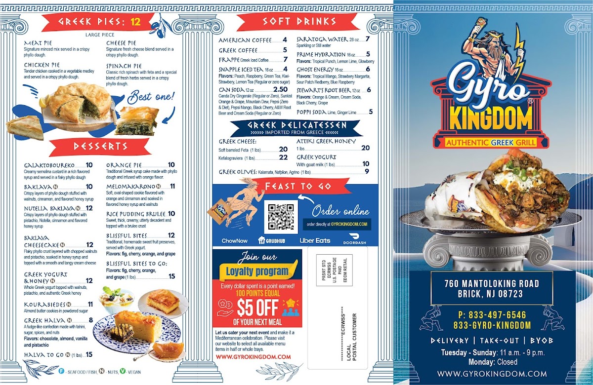 Gyro Kingdom, located at 760 Mantoloking Rd #2 in Brick Township, offers a diverse and flavorful menu that caters to various tastes and preferences. Whether you're in the mood for a quick snack, a hearty meal, or something to satisfy your sweet tooth, this restaurant has something for everyone.
