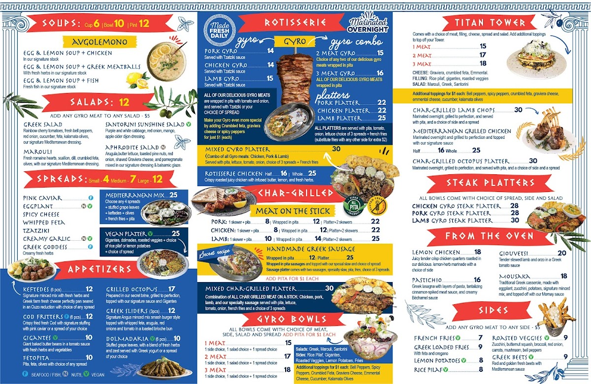 Soup lovers can warm up with the Egg & Lemon Soup, offered in various sizes with chicken or Greek meatballs. And don’t forget to add some zing with the restaurant's Nugget Sauces like Zeus' Thunder or the signature GK Sauce.