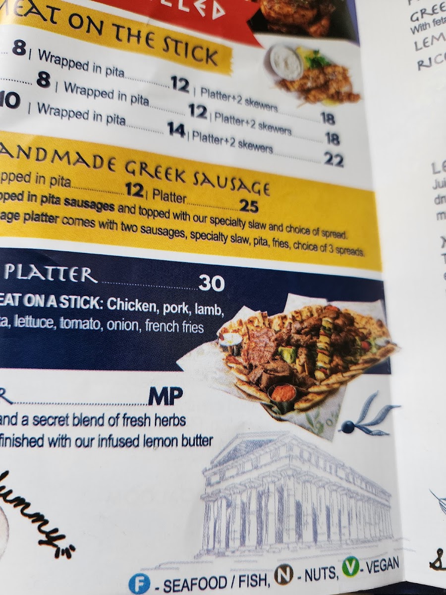 Choose from any two of our delicious gyro meats, a choice of 3 spreads comes with hand-cut Greek fries or a side of your choice for an additional $2 each.